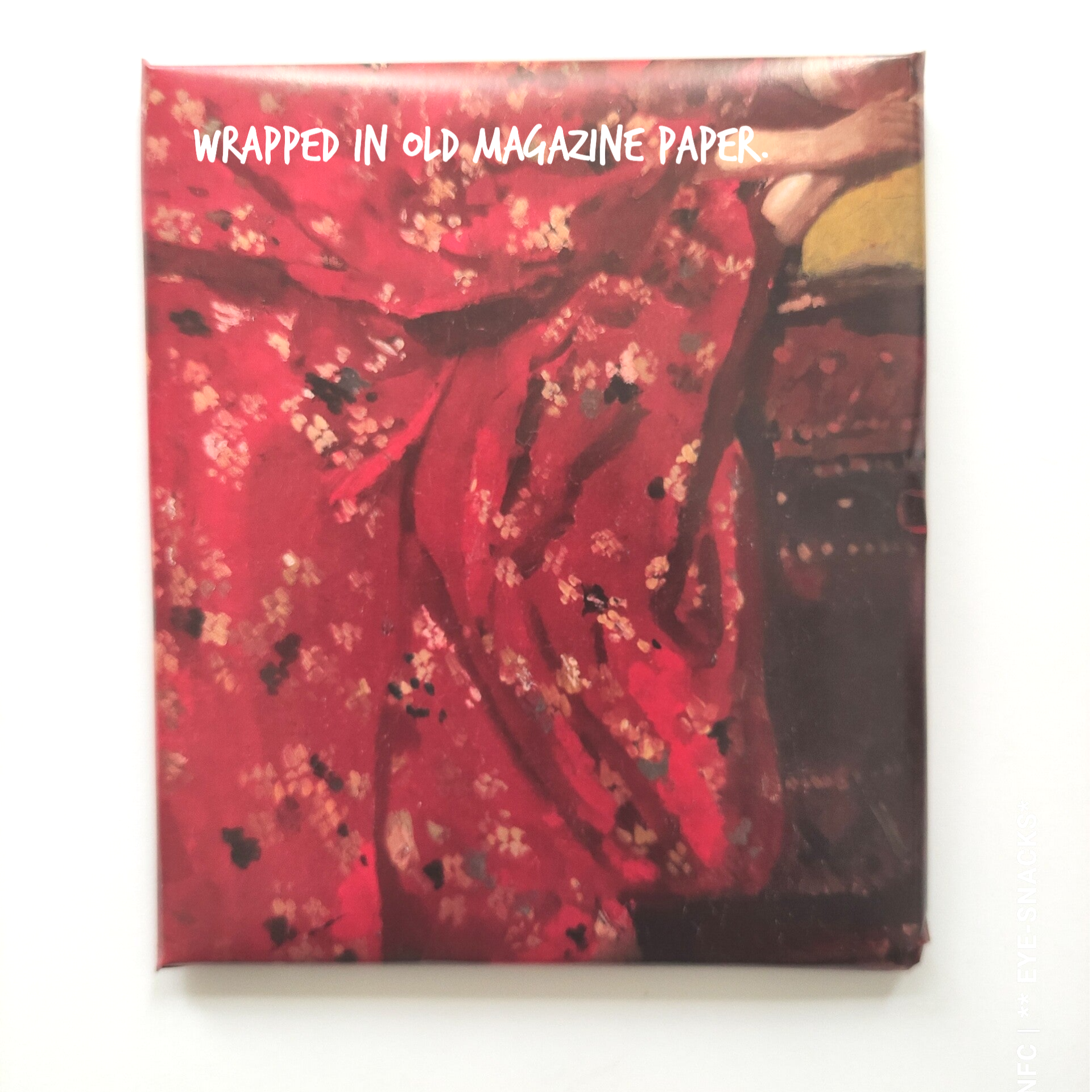 This is a somewhat larger ** EYESNACK **. Made with passion and love. The background has a light brown/dark cream color. The branches are of green metallic color and the flower is red.